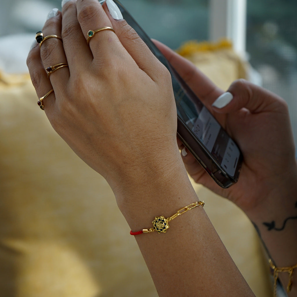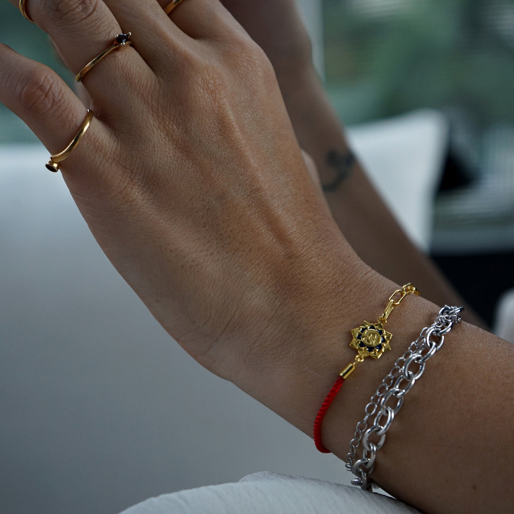 This bracelet is part of our Shield of Protection Collection and is designed to be your favorite jewel. Some cultures wear red string bracelets for luck, love, and to ward off evil.